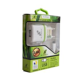 CARREGADOR CELULAR ULTRA RÁPIDO 2.8A MICRO USB V8 XC-V8-GLX* Carregador de parede ultra rápido com conector micro USB USB e 1 entrada USB.* Permite carregar até dois aparelhos simultaneamente.* Compatível com qualquer dispositivo que possua conexão micro USB V8 .ESPECIFICAÇÕES* ENTRADA: 100-240V / 50-60hz* SAÍDA: DC. 5.0V - 2.8A max