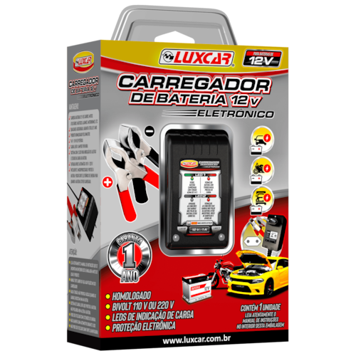 O Carregador Veicular de Bateria 12V Luxcar 1500 carrega mais rápido qualquer tipo de bateria 12V, sendo recarregado em 110v ou 220v.
