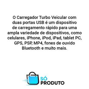 As imagens são meramente ilustrtativas o carregador turbo veicular com 2 portas usb é um dispositivo de carregamento rápido adequado para uma ampla variedade de dispositivos digitais, como telefones celulares, iphone, ipod, ipad, tablet pc, gps, psp, mp4, fones de ouvido bluetooth e muito mais. Com sua capacidade de carregar até dois aparelhos ao mesmo tempo, você nunca mais precisará se preocupar em ficar sem bateria enquanto estiver dirigindo.