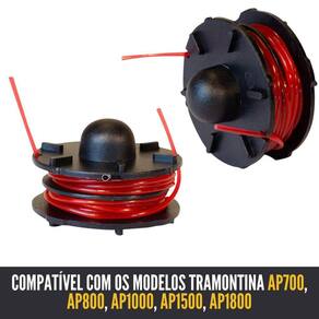 Refil de carretel compativel com aparadores de grama tramontina ap1000t, ap1500, ap500, ap600, ap700, ap800, ap1000, ap1500, ap1800, apr1000, e ap700t. Ideal para manter seu jardim sempre perfeito com a qualidade e a praticidade de um produto bom Marca: Bjb Equipamentos