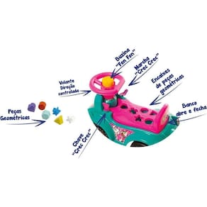Escolha perfeita para os pequenos se diirem enquanto desenvolvem habilidades motoras e cognitivas! Com um design encantador nas cores rosa e amarelo, este carrinho oferece uma experiência de jogo diida e educativa para as crianças. O banco do carrinho pode ser aberto e fechado de maneira prática, criando novas formas de brincar e estimulando a interação com o brinquedo. Essa funcionalidade também ajuda a desenvolver a habilidade de manuseio e coordenação, o carrinho vem com 6 peças geométricas coloridas que podem ser encaixadas de diversas formas no compartimento do brinquedo. Essa atividade desenvolve a percepção de formas e cores, além de estimular a resolução de problemas e a motricidade fina, para completar a diversão, o carrinho possui uma buzina que emite sons diidos, tornando a brincadeira ainda mais realista e interativa. Especificações; Dimensões do Produto Montado; Alt:33cm x Larg: 25cm x Comp:54cm Cor: Verde com Detalhes em Rosa (Atenção: Alguns itens podem apresentar variações nas tonalidades de rosa ou amarelo, sendo enviados de forma conforme a disponibilidade).PESO APROX: 1,400KG. Peso suportado: 10kg. -Idade recomendada: A partir de 12 meses. Contém; 01 Carrinho Andador Interativo Ketokinha Dog Menina Rosa