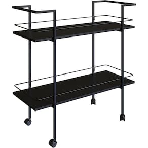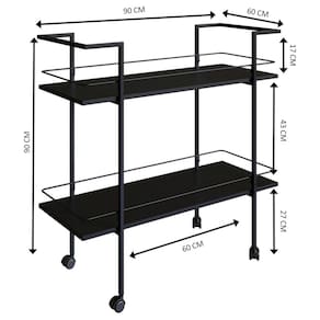 - Design moderno e elegante na cor preta - Ideal para barzinho, adega ou buffet - Superfície lisa e fácil de limpar - Estrutura resistente e estável - Rodinhas que facilitam o transporte