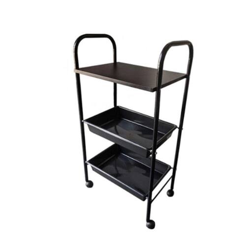 Carrinho auxiliar para Cabeleireiros ou de uso doméstico Utilizado para armazenar ferramentas de trabalho e de apoio sendo um excelente organizador. Ótimo para Estética, tatuadores, salão de beleza Pintura em Epóxi todo Preto 1 Tampo em MDF Preto com 2 bandejas Plásticas na cor Preto Tampo Deverá ser preso com parafusos que acompanha o produto Segue desmontado, não enviamos ferramentas de montagem Altura 92 cm x largura 30 cm x 42 comprimento Segue Manual de instruçoes, leia antes da montagem. Ean: 7891521500253