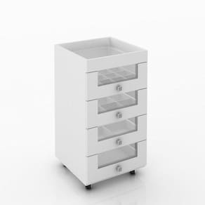 Carrinho Organizador perfeito para você organizar seus itens de maquiagem, perfumes, escovas e acessórios em um só lugar. Estrutura resistente em MDP de 15mm, pintura com acabamento em UV (Brilho). Conta com uma bandeja no topo da peça que deixa tudo mais à mão, 04 gavetas com corrediças telescópicas com fechamento leve e suave, divisores internos setorizados para organizar seus itens de forma funcional, assim você terá muito mais praticidade ao escolher seu item, possui quatro rodízios que deslizam com facilidade, a frente das gavetas são de vidro tornando possível enxergar o que você precisa com mais rapidez, puxadores são modernos e cromados, esta peça é ideal para seus acessórios de beleza mas você pode usar sua imaginação e usar no ambiente que precisar. Este móvel chegará em sua casa separado em 01 volume.