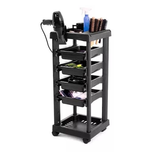 Carrinho em estrutura de plástico reforçado Rodízios na parte inferior. rodinhas Quatro bandejas com abertura lateral Possui orifícios para encaixe de escovas Sua estrutura permite que as bandejas sejam destacadas e fixadas na parte superior. Ou utilize a criatividade para inovar Marca: Não Informado
