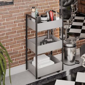O design estilo industrial adiciona um toque de modernidade, ao passo que as rodinhas potencializam a funcionalidade, já que fica mais prático a movimentação dos itens. Seja como carrinho auxiliar para estética ou salão de beleza, seja como organizador de banheiro ou até mesmo como multiuso para lavanderia. Não importa a finalidade, já que esse carrinho organizador com 3 caixas pode servir para todas essas opções e quantas mais você desejar, afinal, versatilidade é o atributo que melhor define essa peça.