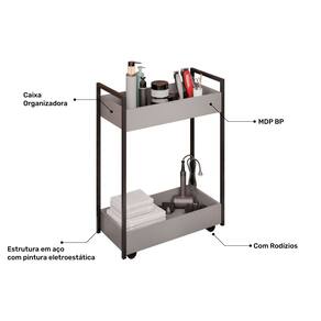 Carrinho Auxiliar Para Salão de Beleza Lara 70cm em Aço com Rodízios Grafite - Desk Design