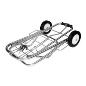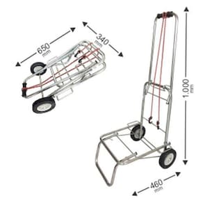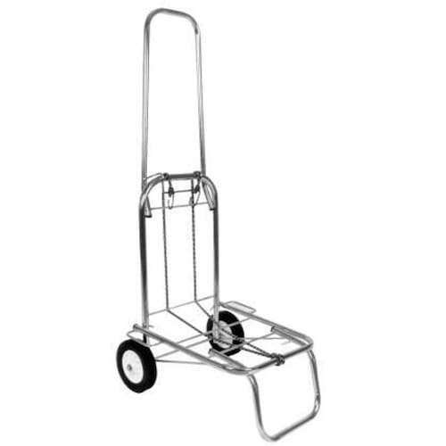 Carrinho dobrável capacidade 100kg Rodas em PVC revestidas em borracha.Acabamento cromado.Acompanha cinta elástica de 1,5m para amarração de carga.CARACTERÍSTICAS TÉCNICAS:Composição: Tubos de 3/4 e 5/8 c/costura - Arames BTC 6mmRoda: 5 de PP Revestida de Borracha