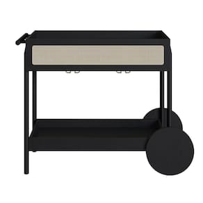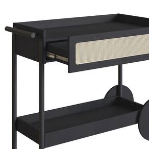 Carrinho Bar 1 Gaveta Oslo Artesano 112 Cm (larg) Mdp Nero Palha Sintética Bege Pé Madeira Maciça