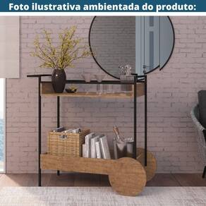 O Carrinho Bar Steel Quadra da Artesano é um móvel confeccionado em MDP BP 15mm, fundo MDF 6mm, estrutura metálica em aço carbono de tubo redondo de diâmetro 15mm com acabamento em pintura epóxi fosca. Um móvel multifuncional que facilita na hora de organizar e armazenar diversos objetos. Traz como característica um traço industrial, sofisticado e moderno.