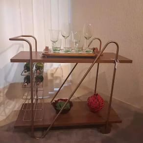 Carrinho Bar London Off White E Cobre O Carrinho Bar London combina design moderno, praticidade e sofisticação, sendo o complemento perfeito para qualquer ambiente. Sua estrutura em metal com acabamento em pintura epóxi acobreado garante resistência e durabilidade, agregando charme e elegância à decoração. Com tampo robusto de 25mm, proporcionando estabilidade e refinamento. Conta com capacidade para até 10 garrafas, organizando suas bebidas com estilo. Duas prateleiras espaçosas, ideais para copos, taças e acessórios. ESPECIFICAÇÕES TÉCNICAS: -Material: Metal; - Acabamento: Pintura epóxi acobreado; - de Portas: Não Possui; - de Gavetas: Não Possui; - Possui Prateleira? Sim; - Possui Rodízios/Pés? Sim; - Capacidade para até: 10 garrafas; - Produto precisa de montagem? Sim; - Garantia: 3 Meses Contra de fabricação; - Medidas: LarguraxProfundidadexAltura; 95x43x85cm;