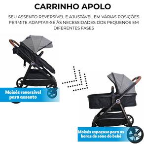 Carrinho Bebê 3 Em 1 Passear Apolo Moisés Reversível Capota