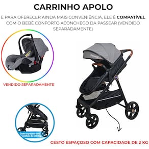Carrinho Bebê 3 Em 1 Passear Apolo Moisés Reversível Capota