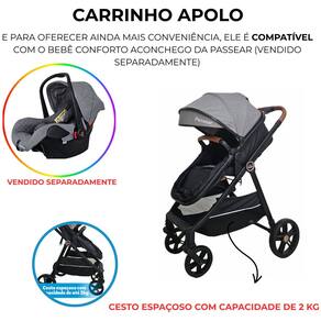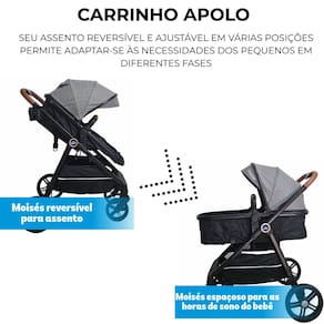 Carrinho Bebê 3 Em 1 Passear Apolo Moisés Reversível Capota