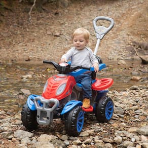 Características Principais: O Quadriciclo Spider Maral é um veículo 3 em 1: pode ser utilizado para passear, empurrar e pedalar, garantindo momentos de diversão em diferentes modalidades. Com aro protetor, apoio de pés e empurrador, é seguro e confortável para passeios supervisionados. Ao retirar os acessórios de passeio, a criança pode pedalar livremente, desenvolvendo coordenação motora e equilíbrio. Equipado com rodas de borracha para melhor aderência, buzina, bagageiro e gancho para sacola, oferece conforto e conveniência durante as aventuras.