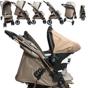 Indicado desde recém-nascido até 15kg Modelo berço-passeio com encosto regulável em 4 posições Cabo reversível Cinto de 5 pontos com protetores de ombro Acolchoado dupla face Protetor frontal Capota removível e retrátil com aba Rodas dianteiras giratórias com duplo sistema de freio (eixos removíveis) Rodas traseiras com duplo sistema de freio (eixos removíveis) Trava de segurança Fechamento com uma mão e desarme automático do encosto Tecido removível e lavável (100% poliéster) Estrutura em aço Certificado de Registro INMETRO nº 003094/2016 - NBR 14389 Medidas: