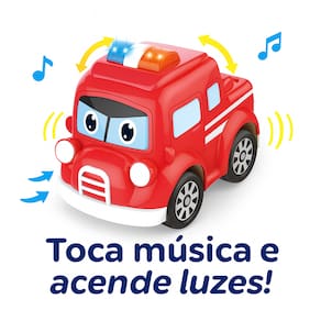 Destaques e Benefícios: Tecnologia Touch: sons ativados com o toque no capô Sons variados: buzina, motor e sirene de bombeiro Luzes piscantes que estimulam a atenção e o interesse Movimento com balanço lateral super divertido Estrutura segura e resistente, ideal para mãos pequenas Estimula o faz de conta, coordenação e percepção sensorial