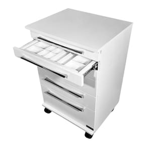 5 (cinco) gavetas. Ter cinco gavetas em uma mesa auxiliar oferece um excelente aproveitamento de espaço, permitindo a organização eficiente de materiais e documentos. As gavetas proporcionam fácil acesso a itens essenciais, mantendo o ambiente arrumado e funcional. Além disso, essa quantidade de compartimentos facilita a separação de diferentes categorias de objetos, promovendo maior praticidade no dia a dia e otimizando o tempo de trabalho em consultórios e clínicas.