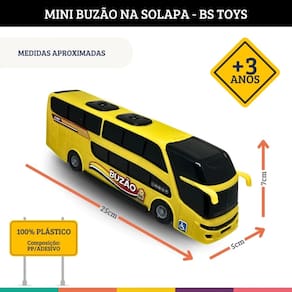 Especificações: Marca: BS TOYS Referência: 503 Modelo: Mini Buzão 2 Andares Medidas Aproximadas - 7 alt. x 5 larg. x 25 comp. Composição: PP, Adesivo Ean: 7898002435035 Idade Recomendada: +3 anos
