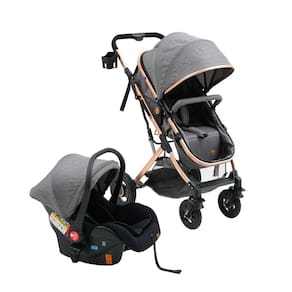 - Composição/ Material: Carrinho: Estrutura em aço e alumínio e revestimento em poliéster. Bebê conforto: PP e Poliéster