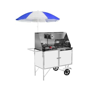 Carrinho de Cachorro Quente e Lanche com Guarda Sol e Rodas Maciças