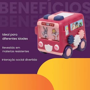 Estimula o Desenvolvimento Cognitivo: As cores vivas e os detalhes interativos ajudam a desenvolver habilidades motoras e sensoriais das crianças, tornando a brincadeira uma experiência educativa Interatividade com Personagens Queridos: As imagens dos personagens como Pernalonga, Piu-Piu e outros clássicos dos Looney Tunes fazem da brincadeira uma viagem ao mundo da imaginação
