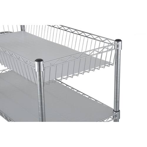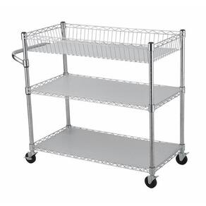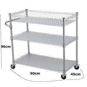 Carrinho de aço cromado durável de ótima qualidade Suporta até 226 kilos de carga Rodas sólidas de 10,16 cm PVC resistente 3 Prateleiras ajustáveis Cobertura das prateleiras em polipropileno