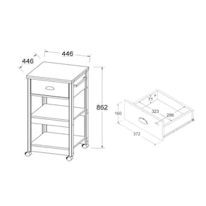 Possui 1 gaveta com corrediças metálicas que suporta até 5 kg.