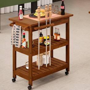 Carrinho Churrasco Grade Churrasqueira Tábua De Cortes Home W02 Madeira Maciça Imbuia - Lyam Decor Fazer aquele churrasco deira é sem dúvida um dos melhores momentos para reunir família ou os amigos! Desta forma, ter um carrinho auxiliar de churrasco é super importante para servir refeições, acompanhamento ou bebidas com higiene e praticidade sem preocupações. Possui amplo espaço para armazenamento de acessórios ou condimentos em sua gaveta e suas prateleiras, suporte de espeto e suporte de talheres grandes. Sem abrir mão da beleza, o carrinho gourmet possui uma tábua de cortes móvel que o deixa ainda mais prático e contribui com a decoração da área de churrasco ou cozinha. Com ele a sua área gourmet está preparada para aquele final de semana! Dimensões do Carrinho (L x A x P) 51 x 90 x 70 cm Características: Estrutura em madeira maciça de Pinus, cor Imbuia. Tampo e estrutura de 20mm com Tábua de Cortes Móvel. Ferragem externa em metal na cor Preto. Rodízios para fácil locomoção. Suporte para talheres grandes, facas e espeto. Suporte para toalha. Possui 01 gaveta. Acabamento rústico em cera. Manter ao abrigo de interno, sem ficar exposto diretamente ao sol, calor e umidade excessiva. Dica de conservação: Não deixe acumular sujeira em seu móvel. Esta sujeira se acumula nos poros, fazendo sua cor escurecer, realize a limpeza deste produto apenas com pano seco. Não cortar alimentos sobre a cerâmica, a prática pode riscar o espaço decorativo. Observações importantes: - Produto para uso residencial em ambiente interno, não devendo ficar exposto diretamente ao sol, calor e umidade excessivos. - Pode haver alguma diferença de tonalidade entre a imagem e o produto real, por conta do tratamento de imagens e a calibração de cores do seu monitor. - As imagens são meramente ilustrativas, não acompanham objetos de decoração e eletrônicos. - Ao receber a mercadoria, o cliente deve verificar as condições da embalagem, caso haja alguma não assine o de . - Montagem, desmontagem e outras instalações serão de responsabilidade do cliente. Não nos responsabilizamos, no ato da , por subir escadas/elevadores ou pelo por guincho em apartamentos. Eventuais despesas são de responsabilidade do comprador. - Confira as dimensões do produto e certifique-se de que passará normalmente por supostos elevadores, portas, escadas e/ou corredores de sua residência. NA