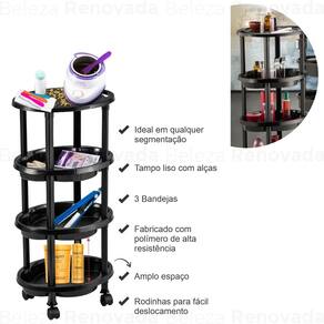 Com 3 bandejas plásticas lisas de fácil acesso, este carrinho promove funcionalidade ao organizar e acomodar seus produtos e acessórios de beleza de forma organizada. Além disso, a base redonda com rodízios fabricados em nylon proporciona grande estabilidade e mobilidade ao produto, facilitando o deslocamento em seu salão de beleza.