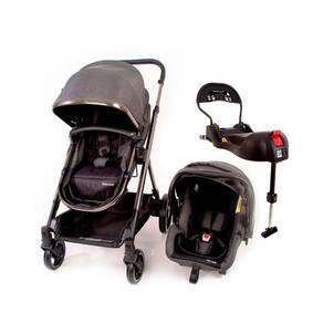 O trio completo: carrinho + bebê conforto + base veicular para cintos e ISOFIX. Estrutura leve de alumínio cromado, função moisés e passeio, capotas com proteção solar UV50+