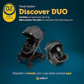 O Travel System Discover Duo da Safety 1st é a escolha perfeita para quem busca praticidade e segurança desde o nascimento. Combinando carrinho e bebê conforto, ele está pronto para acompanhar todas as aventuras da sua família!