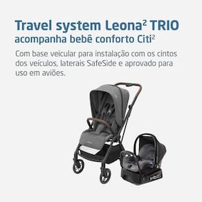 O Carrinho Travel System Leona Trio da Maxi-Cosi é a escolha ideal para pais que buscam conforto e praticidade em um conjunto completo e premiado. Desenvolvido para acompanhar desde os primeiros dias de vida até os 15 kg, este conjunto oferece um carrinho de bebê que se transforma em um sistema de viagem 3 em 1, combinando o design urbano-versátil do Leona com o bebê-conforto Citi.