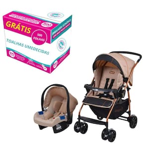 Carrinho com Bebê conforto Travel System Rio K Burigotto com kit toalhas umedecidas
