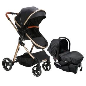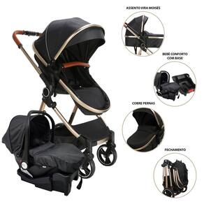 Carrinho Com Bebê Conforto Ts Mike Preto/Gold Premium Baby