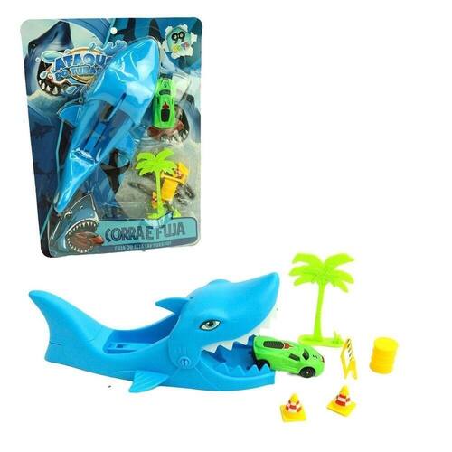 Carrinho com Lançador 07 Peças Tubarão - Contém: 1 Carrinho (6x1,5cm), 1 Lançador (22x6,5cm) e 5 acessórios para compor o cenário;\nEspecificações:\nMarca : SATYAM\nTipo de material : Plástico\nCores ou Estampa : Azul\nDimensões do Produto : 31 X 22 X 7 CM\nDimensões da Embalagem : 31 X 22 X 7 CM\nPeso Bruto (Gramas) : 0.160 Marca: Não Informado