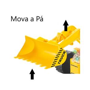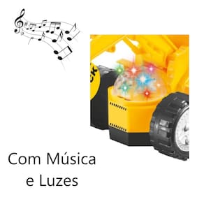 O carro controle remoto sem fio Carregadeira é muito irado! Ele anda para frente e trás, tem luz e música. Mova a pá e gire o volante para a brincadeira ficar mais divertida.