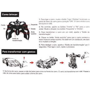 Conteúdo da embalagem: 01 x carro que se tranforma 01 x controle remoto 01 x carregador 01 x bateria recarregável