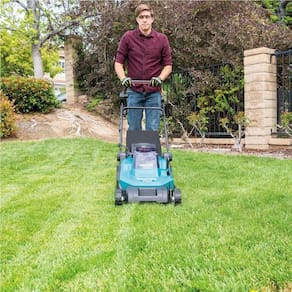 Conteúdo da embalagem: 1 Carrinho Cortador de Grama Sem Fio 36V Potência 950W Com 2 Baterias Recolhedor DLM432PT2 127V Makita