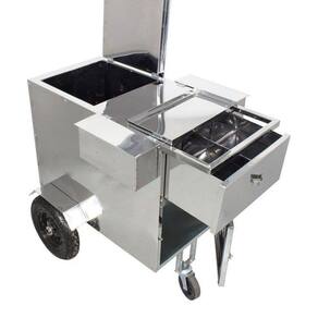 Parte inferior em chapa branca com pintura epóxi eletrostática é que mais resistente. A Parte superior Inteira em aço Inox, juntamente com os dois compartimentos para granolas, cereais e etc..