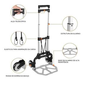 Carrinho de Alumínio Dobrável para Cargas 80 Kilos 03 Estágios Carrinho de Alumínio Dobrável para Cargas 80 Kilos 03 Estágios ===================================== Ideal para o dia-dia, seja em viagens, no trabalho, nas compras ou qualquer ocasião que se necessite transportar caixas, bagagens ou outros tipos de volumes. Fabricado em alumínio de alta resistência, possui alça telescópica que se estende até 1 metro de altura. Com rodas emborrachadas, pode ser Utilizado em qualquer superfície. Dobrável e compacto, medindo apenas 61cm de altura quando fechado, pode ser facilmente guardado em armários, porta malas, compartimentos de bagagens de aviões, trens e barcos. ===================================== Contém: 01 Carrinho para Transporte de Cargas 01 Elástico Extensor Especificações: - Material: Plástico ABS e Alumínio - Medida Aberto no Máximo: 100cm x 28cm x 39cm - Medida Aberto Intermediário: 83cm x 28cm x 39cm - Medida Aberto no Mínimo: 61cm x 28cm x 39cm - Medida da Plataforma: 39cm x 28cm - Capacidade: até 80 Kilos - Prático: muito fácil de abrir, usar e fechar - Compacto: cabe em qualquer lugar - Maior praticidade para seus transportes - Dobrável: Sim - Alça retrátil que se estende até 1 metro - Rodinhas emborrachadas - Alça Telescópica de 03 estágios - Cor do Elástico e das rodinhas enviado de forma aleatória conforme disponibilidade em ===================================== Devido à diferença entre monitores e iluminação diferentes, pode haver variação na tonalidade apresentada no anúncio. Medidas muito aproximadas. Marca: Não Informado