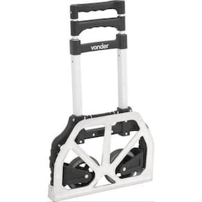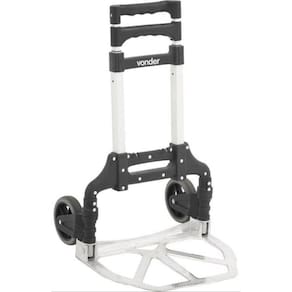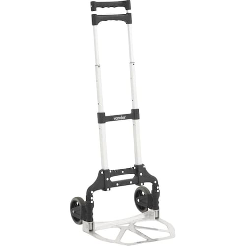 Destaques e diferenciais Possui rodas revestidas com borracha sintética, base dobrável, cabo telescópico e plataforma em alumínio fundido