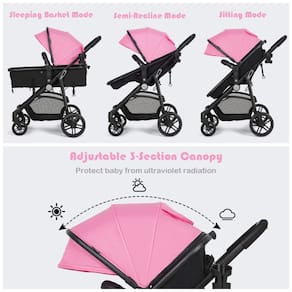 CONFORTÁVEL E ADAPTÁVEL Este carrinho possui encosto e alça ajustáveis. Você pode ajustar a parte de trás do carrinho para atender aos diferentes requisitos do seu bebê, seja para deitar, sentar ou dormir. O assento confortável com arnês de segurança de 5 pontos e almofada de dormir ajustável em inclinação, oferece conforto e segurança para o seu bebê. Além disso, a alça de empurrar tem conversões bidirecionais, permitindo que você possa optar por enfrentar o seu bebê conforme sua conveniência.