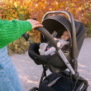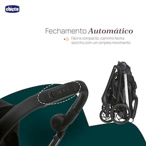 O sistema de fechamento é automático e compacto, otimizando o armazenamento e o transporte no dia a dia. Além disso, o modelo possui compatibilidade com o bebê conforto Kory Essential (vendido separadamente), transformando-se em um sistema de viagem completo.