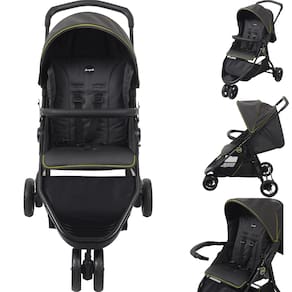 O CR3 possui 3 rodas, protetor frontal com acabamento externo em couro com um toque macio e confortável, amortecedores, encosto que reclina em 4 posições, capota regulável e removível, cinto de segurança de 5 pontos, rodas dianteiras giratórias, freio traseiro conjugado e cesto porta-objetos.