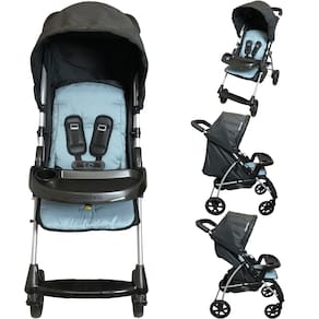 O sistema de fechamento com trava e desarme automático do encosto facilita o manuseio no dia a dia. O carrinho é compacto quando fechado e pode ser armazenado com facilidade mesmo em porta-malas menores.