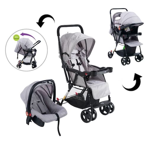 Carrinho De Bebê Com Bebê Conforto Youturn Maxi Baby Cinza