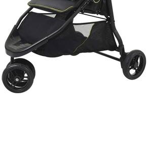 Características Técnicas: Protetor frontal com acabamento externo com um toque macio e confortável Amortecedores nas rodas dianteiras giratórias Encosto regulável em 4 posições Capota regulável e removível Freio traseiro conjugado Amplo cesto porta-objetos Cinto de segurança de 5 pontos Trava para fechamento