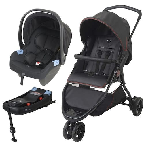Conteúdo da Embalagem: 1 Carrinho de Bebê CR3 Gray Red 0 à 15 kg 1 Bebê Conforto Materna Preto 1 Base Isofix para Cadeira Materna