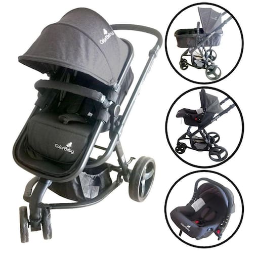 Carrinho Travel System Evolution Color Baby O Carrinho Travel System Evolution da Color Baby, é um carrinho 3 em 1 super completo e diferenciado para bebês recém-nascidos de até 15kg. Ele tem 3 modos, bebê conforto, carrinho de bebê e moises, tudo super moderno com um design único e o sistema de três rodas. No modo moises encaixe nas laterais do carrinho, você verá que o carrinho moises é super espaçoso e confortável, ele pode ser utilizado a partir de recém nascidos e além de servir como berço e ser colocado do lado da cama. O berço moises possui vários ângulos de inclinação anti-refluxo e a capota do moises é também reclinável e você possui a opção de removê-lo através do zíper e das presilhas laterais e ajustá-lo conforme a posição do sol. Para o modo carrinho de bebê, basta inclinar o moises e prender as fivelas do apoio de pé para que se torne um assento, vem incluso uma alça 360° para encaixe, facilitando a entrada e saída da criança. No modo bebê conforto, encaixe as peças na laterais do carrinho, a alça é ajustável conforme a necessidade dos pais e possui três níveis de inclinação, o cinto de 3 pontos do bebê conforto possui duas alturas. escolha o mais confortável para o bebê, a mais baixa é para quando o bebê é recém-nascido e a mais alta é para os bebês maiores, as fivelas podem ser ajustadas para ficar na altura do ombro, só é necessário puxar a fivela frontal, e se o sinto estiver muito justo é possível soltá-lo através de um botão embaixo do acolchoado do bebê conforto. Em todos os modos do Evolution você pode deixar o bebê virado para quem está empurrando ou para vista, super versátil né? A barra do carrinho é ajustável a 9 posições diferentes, basta apertar os botões ao lado. Os assentos são revestido com um tecido resistente e macio com uma cor muito moderna e atual. O carrinho apresenta formato de triciclo e é um modelo mais esportivo com rodas grandes, fazendo com que seja muito mais leves para empurrar. A trava das rodas traseiras e frontal são de pedal único, alem de possuir um porta objetos espaçoso que suporta até 2Kg. Toda sua estrutura é de alumínio pesando menos de 14Kg. Para deixar o carrinho compacto feche apertando os botões da barra, e para abri-los solte a trava e puxe o carrinho pela alça. Esse é um carrinho Evolution da color baby, um carrinho 3 em 1 super completo e versátil. Material: - Plástico, Nylon e Espuma - Cor: Preto Incluso no carrinho: - Porta objeto grande - Carrinho moderno - 1 Berço moisés - 1 Bebê conforto Medidas Aproximadas da Caixa: - Altura: 50cmcm - Largura: 94cm - Profundidade: 51cm Este carrinho é destinado para crianças a partir de 0 meses e com peso de até 15Kg.